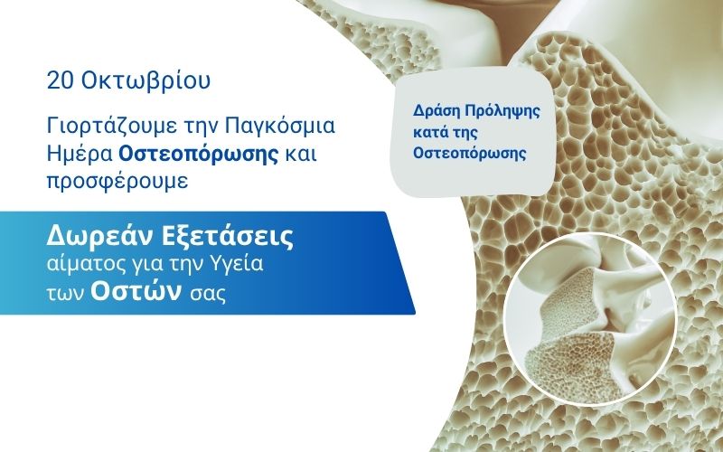 Η 20η Οκτωβρίου έχει καθιερωθεί ως Παγκόσμια Ημέρα Οστεοπόρωσης, με στόχο την ενημέρωση και την ευαισθητοποίηση γύρω από αυτή τη σιωπηλή αλλά σοβαρή νόσο. Η οστεοπόρωση χαρακτηρίζεται από μείωση της οστικής πυκνότητας και αυξημένο κίνδυνο καταγμάτων, επηρεάζοντας εκατομμύρια ανθρώπους παγκοσμίως.